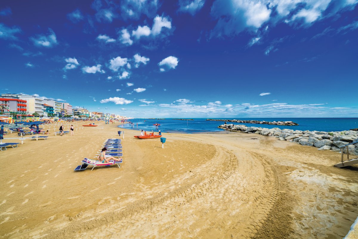 Rimini ist wohl einer der bekanntesten Orte an der italienischen Adria. Ein breiter Sandstrand lädt zum Sonnenbaden ein. Abends pulsiert das Leben in den Straßen – Restaurants, Bars, Discos und Geschäfte haben lange geöffnet.