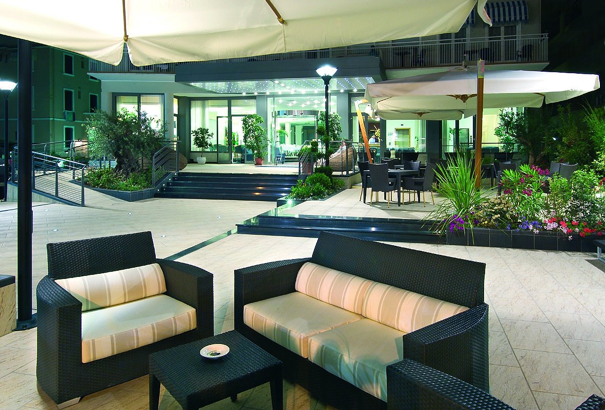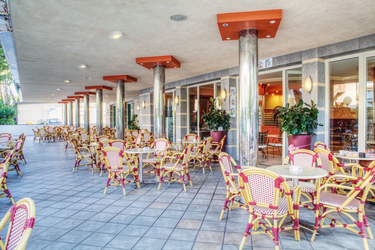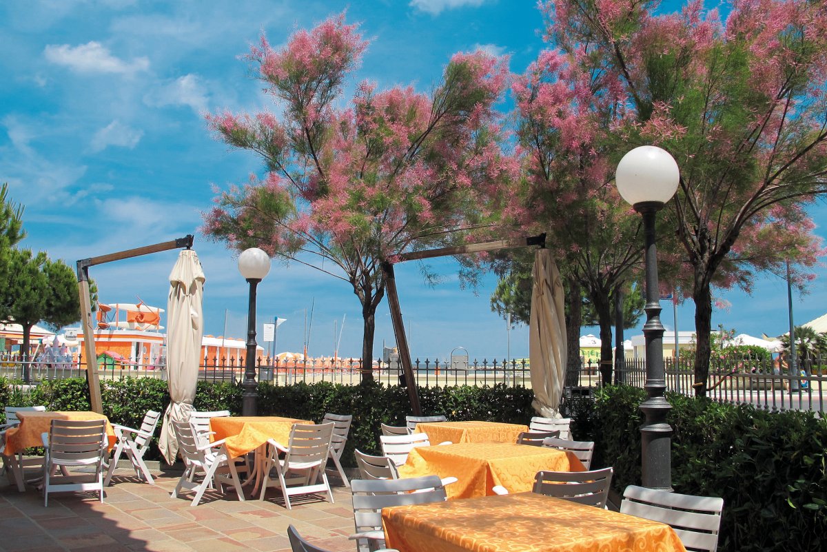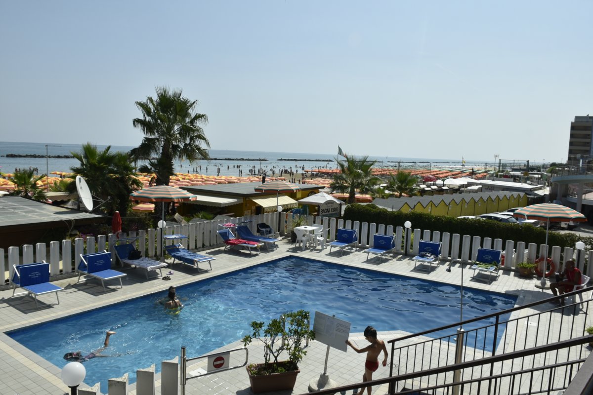 Ausstattung: Von den Besitzern persönlich geführtes Haus mit großem Speisesaal mit Klimaanlage, Lift, Bar, Spielraum für Kinder, Koch-Ecke für Mütter mit Kleinkindern. Am Strand Umkleidekabinen, Schwimmbecken, Mini-Club und Babysitter.