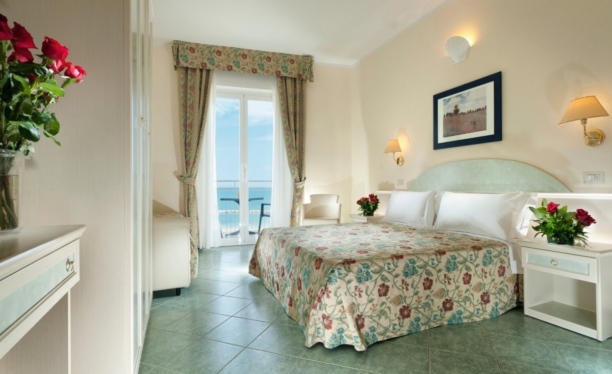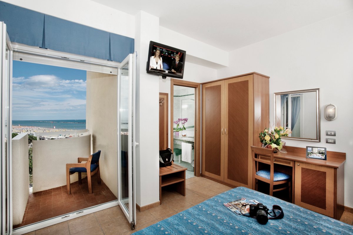 Zimmer: "Standard" mit Bad oder Dusche/WC, Föhn, TV, Safe, Telefon, Minibar, Klimaanlage, Balkon, WLAN. Zimmer "Superior" und Zimmer mit seitlichem oder direktem Meerblick gegen Aufpreis buchbar. Einzelzimmer ohne Balkon.