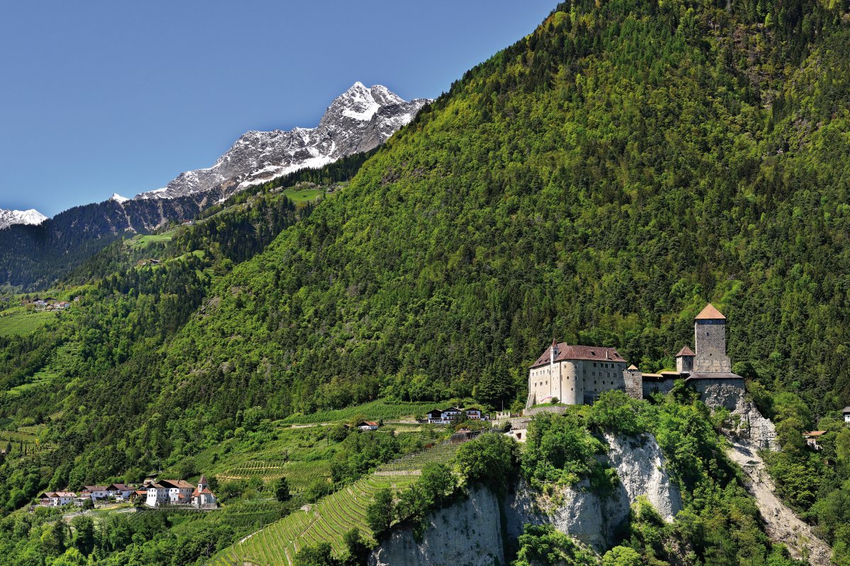 Dorf Tirol liegt zu Füßen des Schlosses Tirol. Meran erricht man über den Tappeiner Weg, mit der Seilbahn oder mit dem Gästebus.
