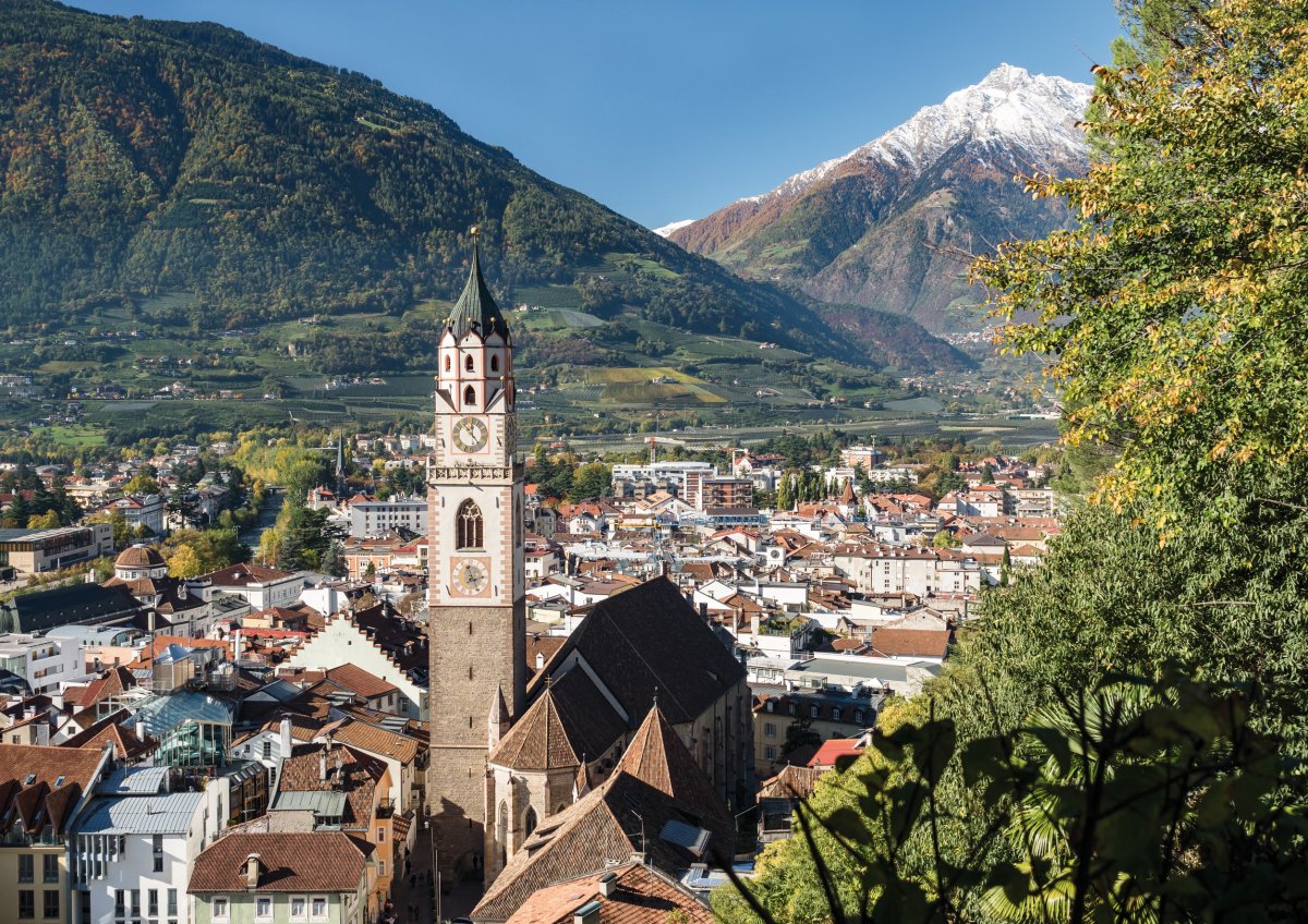 Meran ist geprägt von ausgedehnten Parks und grünen Promenaden, von botanischen Gärten und zahlreichen Wasserläufen. Die Stadt besticht durch die alpin-mediterrane Atmosphäre und das urbane Flair in der Altstadt, zwischen mittelalterlichen Laubengängen und den Prunkbauten der Belle Époque.