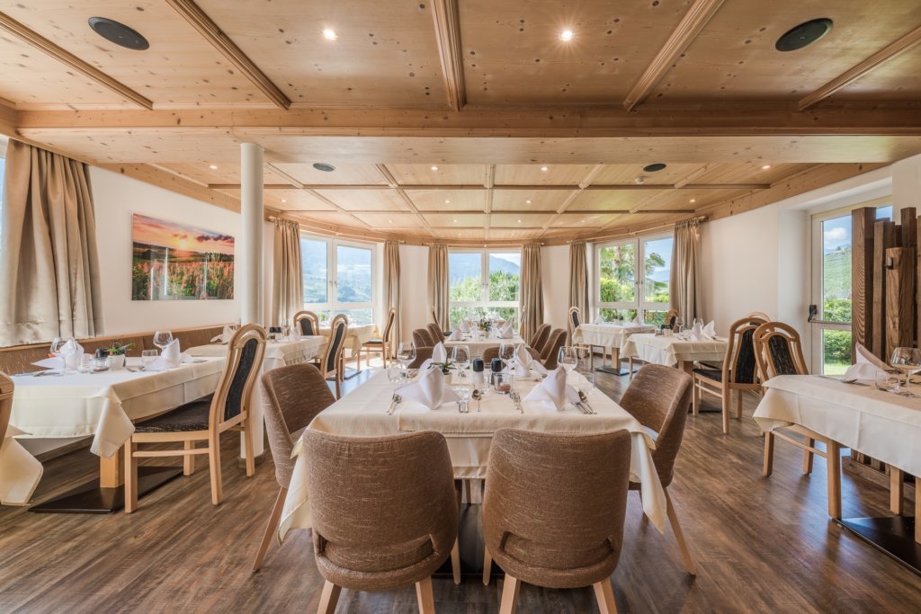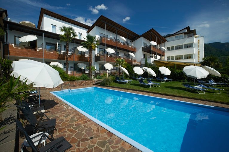 Allgemeines: Reichhaltiges Frühstücksbuffet, Menüwahl mit Salatbuffet. Ausgezeichnete Küche mit internationalen und Südtiroler Spezialitäten, Grillabende. Gratis Fahrradverleih. Partner-Hotel der Therme Meran. Südtirol Guest Pass.