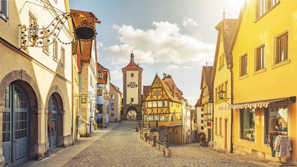 Rothenburg ob der Tauber: Wir tauchen ein in lebendiges Mittelalter. Wir lassen Mittelalter und Renaissance vor unseren eigenen Augen wiederauferstehen. Die einzigartige Atmosphäre Rothenburgs spürt man bei einem Spaziergang durch die Straßen und Gässchen, auf dem an nahezu jeder Ecke Zeitzeugen einer längst vergangenen Epoche entdeckt werden können: liebevoll restaurierte Häuserfronten, Brunnen, Giebel, Erker und Schilder lassen erahnen, wie sich einst das alltägliche Leben vor langer Zeit hier abspielte. Folgt man der begehbaren Stadtmauer, kann man einen wundervollen Ausblick auf die geschützte Stadt gebnießen!
