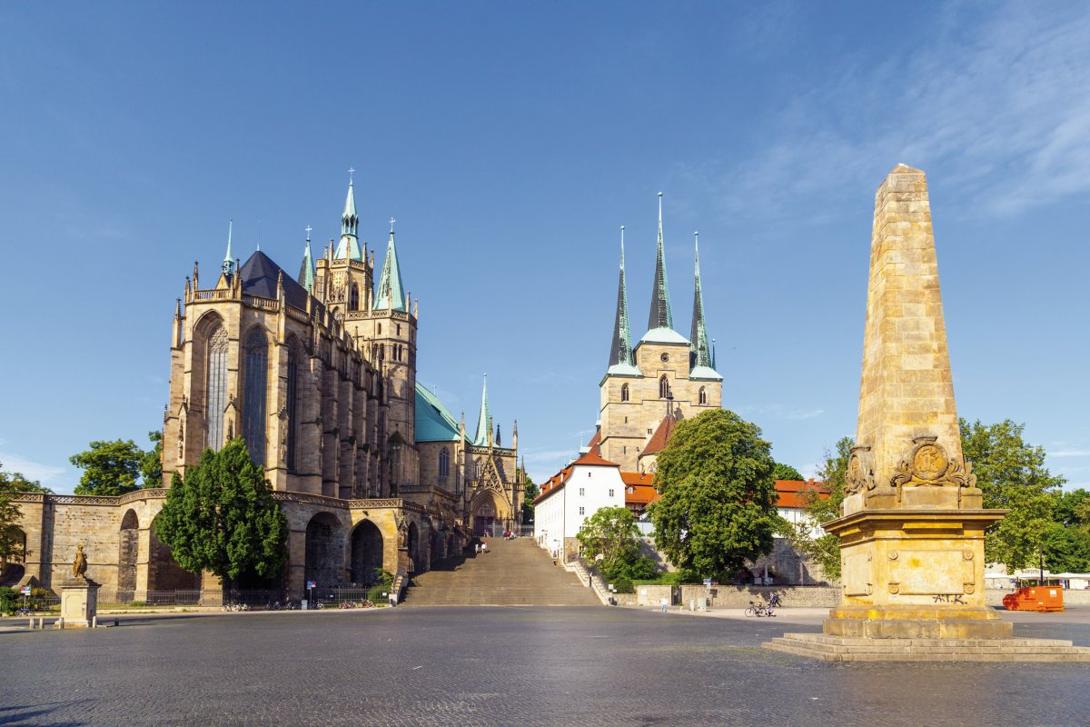 Erfurt wurde schon oft als "Rom Thüringens" bezeichnet wegen seiner Vielzahl an Kirchen und Klöstern, Ein absoluter Star unter den Erfurter Bauwerken ist die Krämerbrücke, mit 120 m die längste bebaute und bewohnte Brücke Europas. Ein weiterer Besichtigungshöhepunkt ist das monumentale Ensemble Mariendom und Severi-Kirche. Jedes Jahr finden hier auf den 70 Stufen die berühmten Domstufen-Festspiele statt.