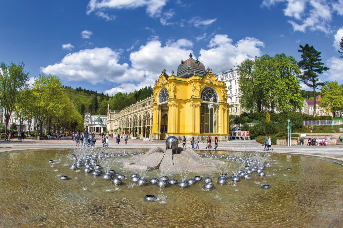 Marienbad entstand 1808 und ist wie Karlsbad über die Landesgrenzen hinaus berühmt und beliebt. In der Stadt und ihrer Umgebung wurden fast einhundert kalte Quellen mit einem hohen Kohlendioxidgehalt entdeckt, von denen einige schon im 16. Jhd. genutzt wurden. Sehenswert sind die Kurkolonnade von 1889 und die Singende Fontäne mit Musik und Lichteffekten.