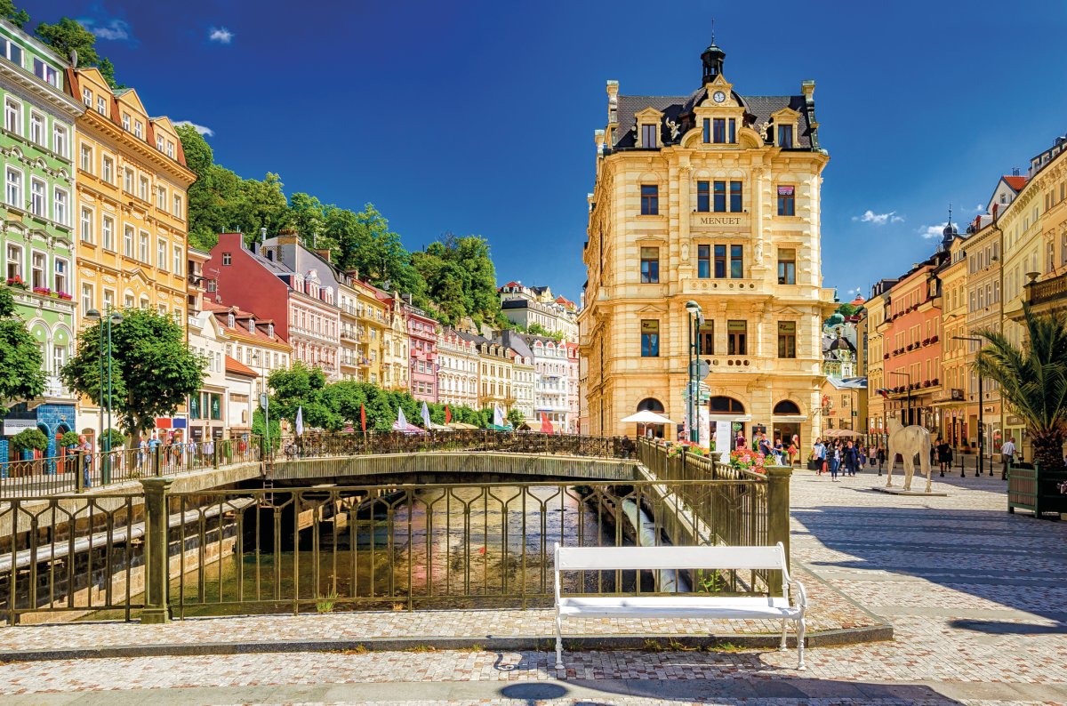 Das um 1350 von Karl IV. gegründete Karlsbad ist das bekannteste und größte der drei Kurbäder. Sehenswert sind die historischen und modernen Kureinrichtungen, die berühmten Kolonnaden, die Marien-Magdalenen-Kirche, das Theater von 1886 u.v.m.