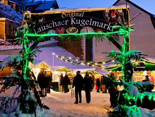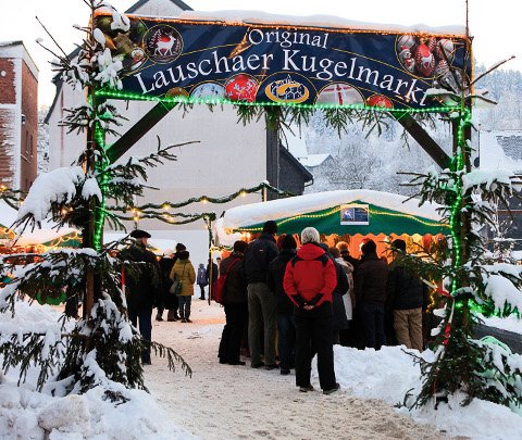 In der Vorweihnachtszeit lädt die Glasbläserstadt Lauscha ihre Besucher zu einem Weihnachtsmarkt der besonderen Art ein. Dieser Weihnachtsmarkt hat sich inzwischen zu dem originellsten Spezialmarkt für gläsernen Christbaumschmuck in Deutschland entwickelt. Der Überlieferung nach wurde der erste gläserne Christbaumschmuck von einem armen Lauschaer Glasbläser im Jahre 1847 hergestellt. Statt mit teuren Winterfrüchten schmückte er seinen Tannenbaum mit Äpfeln und Birnen aus Glas.