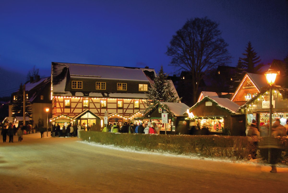 Direkt im Ortszentrum gelegen, bieten über 60 Buden Seiffener Volkskunst oder eine Vielzahl anderer Geschenkartikel an! Typisch erzgebirgische Leckereien verwöhnen den Besucher kulinarisch! Wie wäre es mit einem Abstecher ins Spielzeugmuseum? Weihnachtliche Musik vor dem Rathaus lädt zum Zuhören ein!