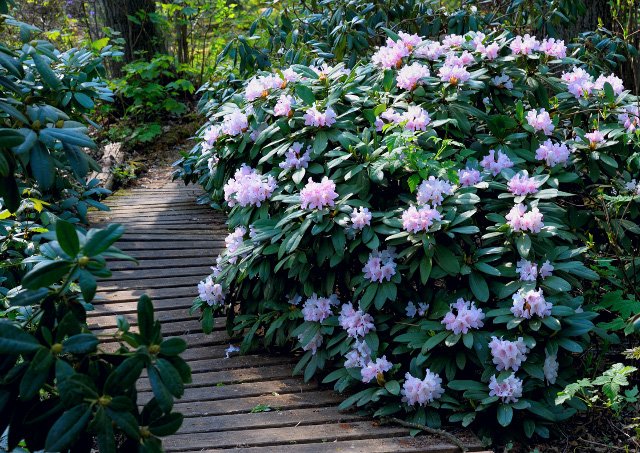 Der Rhododendronpark von Schloss Dennenlohe ist der größte in Süddeutschland! Der Weg führt durch Hügellandschaften, entlang des Dennenloher Schlossweihers auf elf Inseln, die über zahlreiche unterschiedliche Brücken und Stege zu erreichen sind. Auf einem Spaziergang entdeckt der Besucher eine große Anzahl seltener Bäume, Sträucher und Stauden - wie zum Beispiel freistehende Sumpf-Zypressen im Schlossweiher. Die Artenvielfalt an Pflanzen schafft auch einen hervorragenden Lebensraum für unterschiedlichste Vogel- und Tierarten und bietet Raum für viele Pflanzen, die auf der Roten Liste aufgeführt sind.