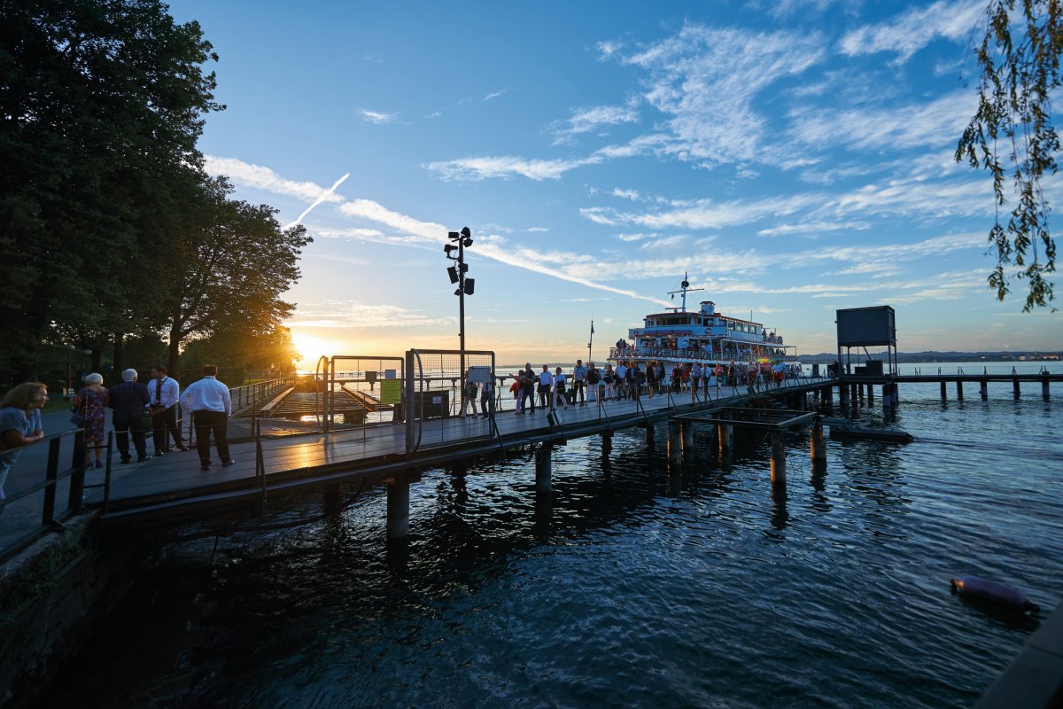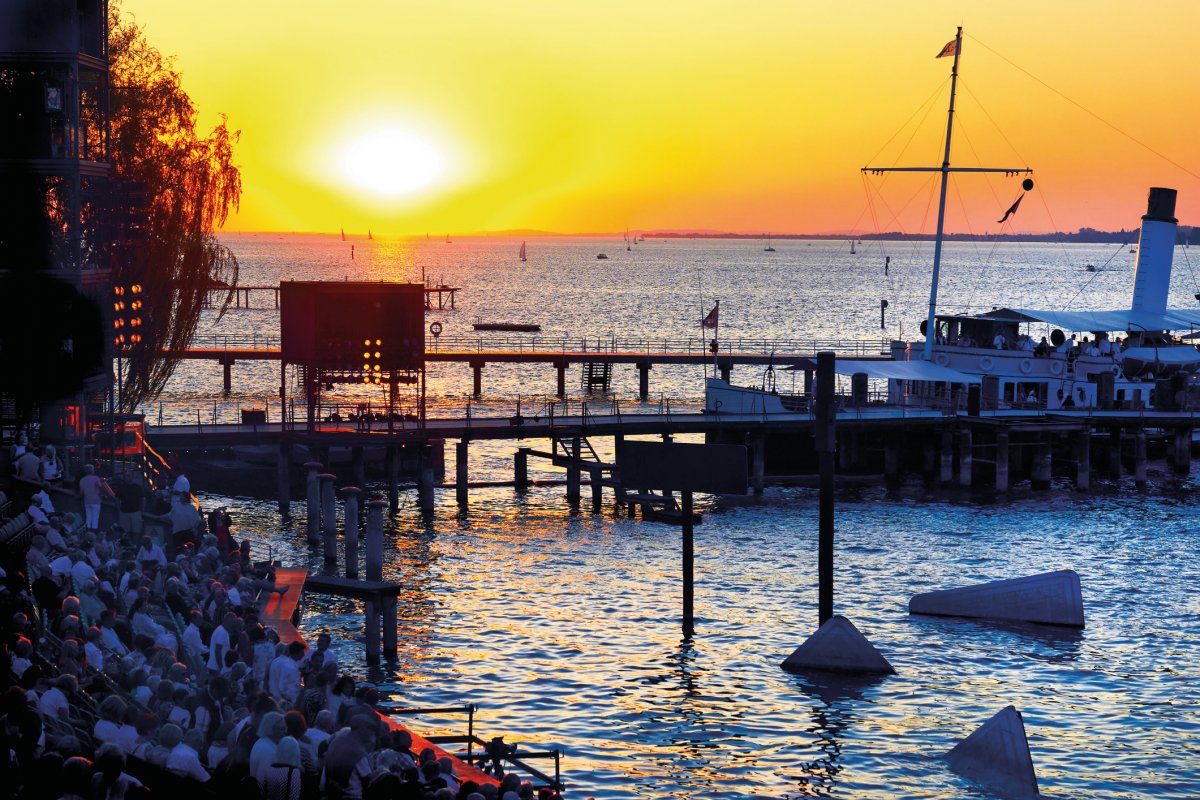 Anreise auf der Autobahn ins Hotel nach Feldkirch. Nach dem Abendessen Transfer nach Bregenz und Besuch der Aufführung von LA TRAVIATA auf der Seebühne.