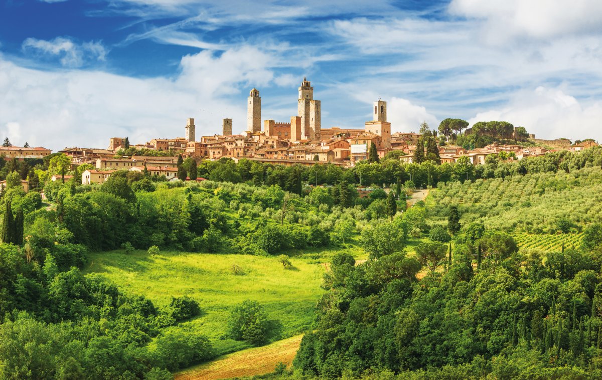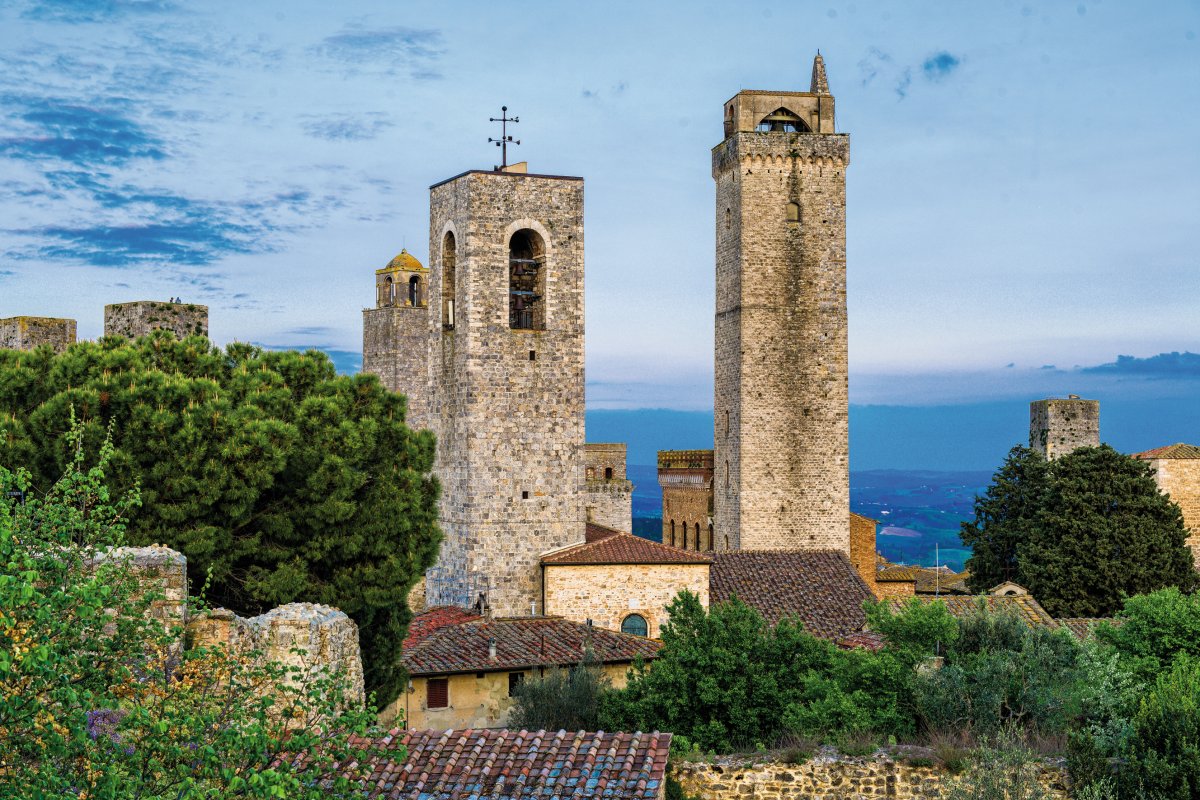 Das mittelalterliche Städtchen Volterra liegt im schönsten Hügelland der Toskana. Spuren der Etrusker und Römer, der Dom, imposante Palazzi und die wuchtige Festung der Medici prägen das Bild des Ortes. Weiter in die „Stadt der Türme“, San Gimignano, einem Kleinod mittelalterlicher Baukunst.