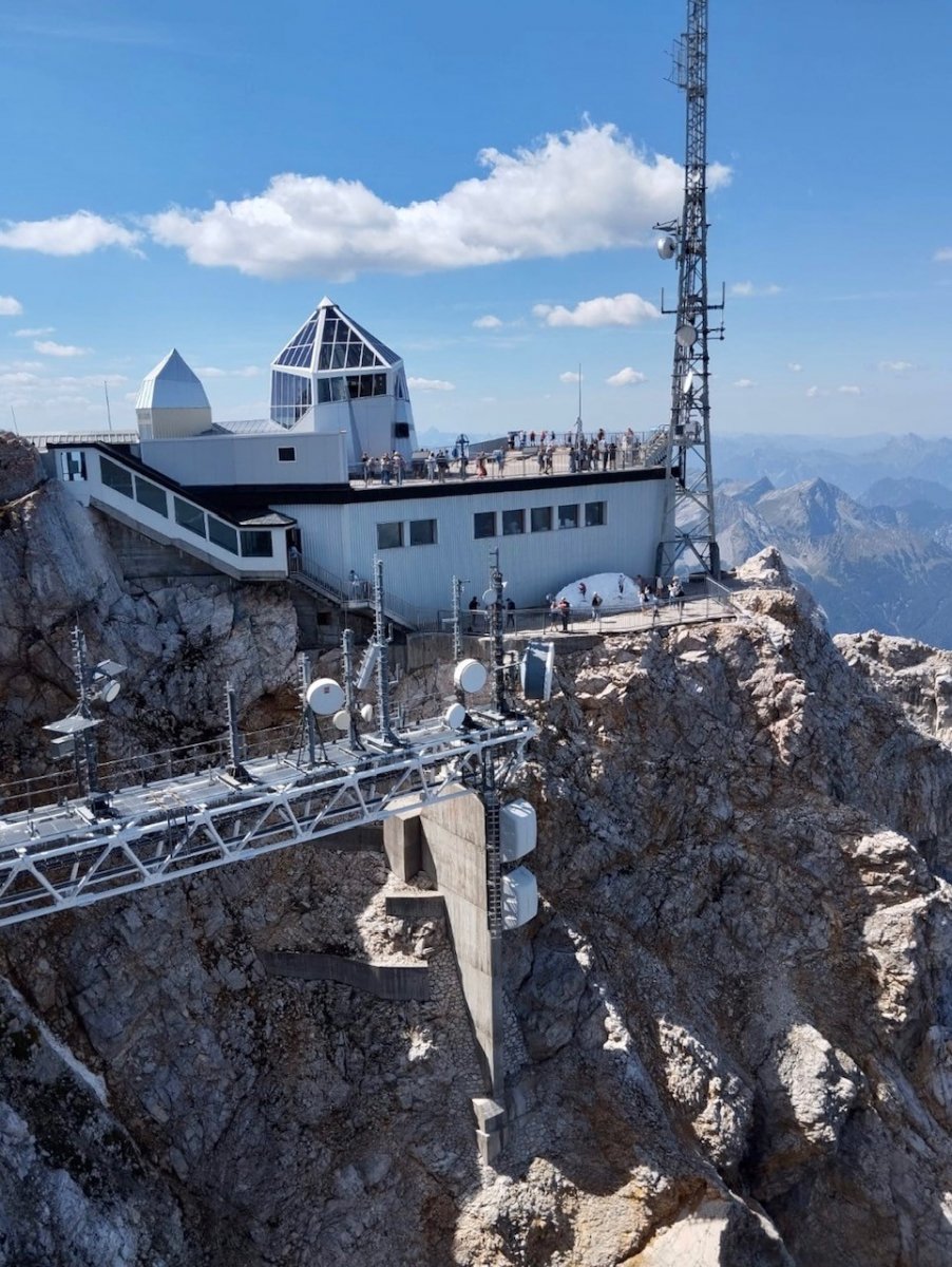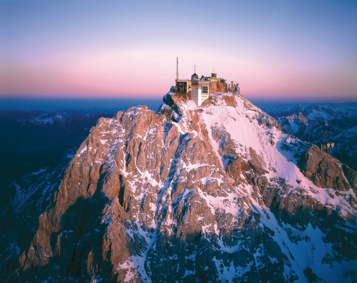 Es erwartet Sie der mit fast 3.000 Metern höchste Berg Deutschlands mit seinem eindrucksvollen Panorama. Gleich aus vier Ländern grüßen die Berge: Piz Bernina (Schweiz), Ortler (Italien), Wildspitze und Großglockner (Österreich) oder die sanfteren Kuppen Bayerns, die bis zur Millionenstadt München hin sichtbar bleiben.