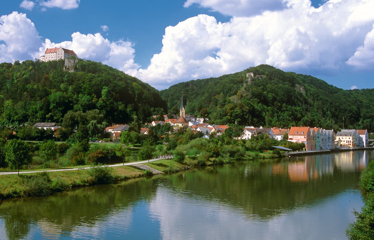 Das Altmühltal ist Deutschlands zweitgrößter Naturpark und lädt dazu ein, entdeckt zu werden. Da windet sich die Altmühl in unendlichen Schleifen und Bögen durch breite Täler, vorbei an bizarren Felswänden, durch blühende Wiesen mit weidenden Schafen und goldgelben Rapsfeldern. Urige Burgen grüßen von waldigen Höhen und schöne Orte laden zur Einkehr ein. Riedenburg - die "Perle des Altmühltals" - ist eine Stadt im niederbayerischen Landkreis Kelheim und liegt am Fuße der Rosenburg und der beiden Burgruinen Rabenstein und Tachenstein. Eine Idylle ist die Altstadt direkt am Ufer der Altmühl!