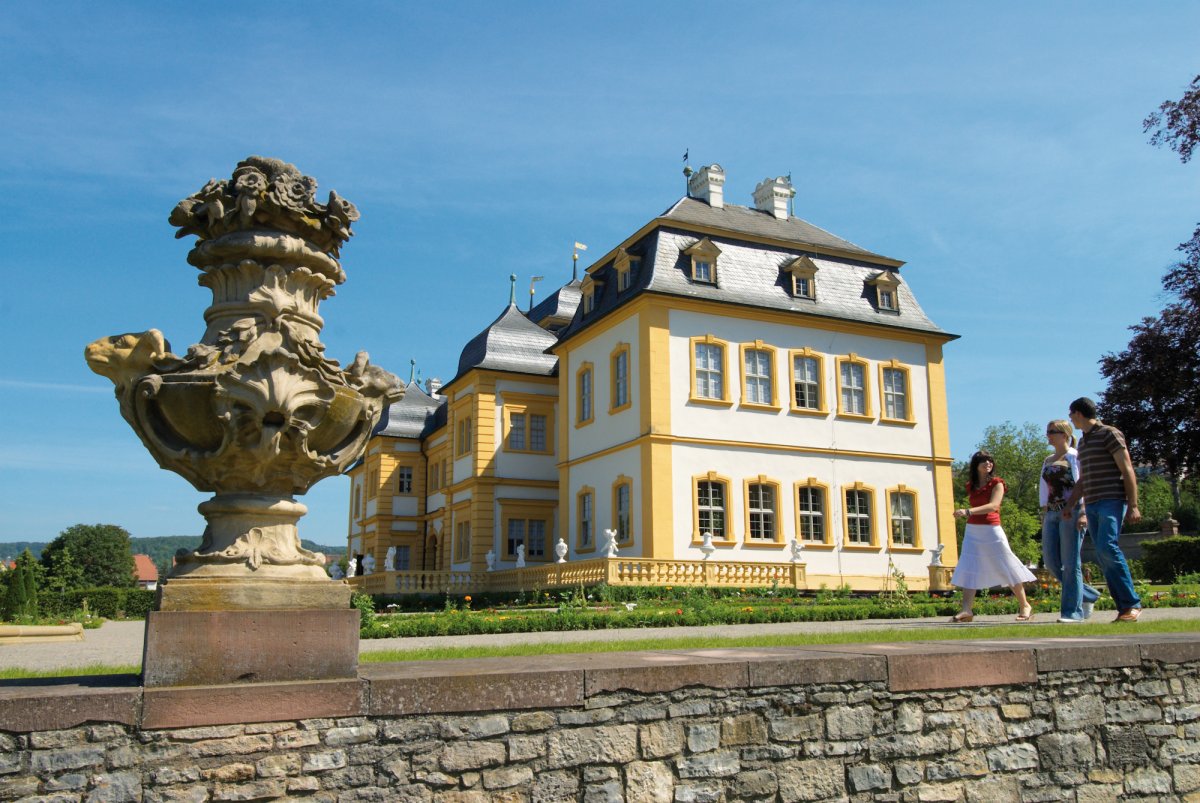 Veitshöchheim verzaubert durch seine beschauliche Art. Der Main, Kirchen, Kapellen, Hofgarten und Schloss, Häuser und Gassen bilden ein Kunstwerk, ein einzigartiges Erlebnis in reizvoller Landschaft. Einer der schönsten Rokokogärten Europas lädt zum Spaziergang ein. Der ehemalige Sommersitz der Würzburger Fürstbischöfe hat Veitshöchheim weithin bekannt gemacht. Die großzügige Parkanlage aus dem 18. Jahrhundert begeistert mit reichhaltigem Figurenschmuck, Laubengängen, Heckenkabinetten und Wasserspielen. Das Schloss entstand 1681 und wurde nach den Plänen Balthasar Neumanns vergrößert.