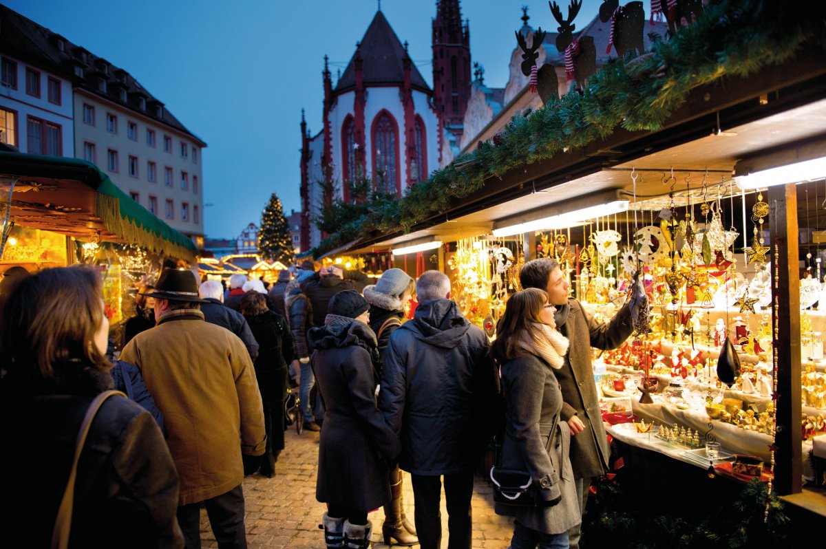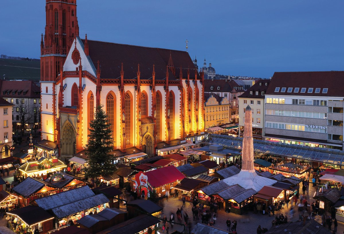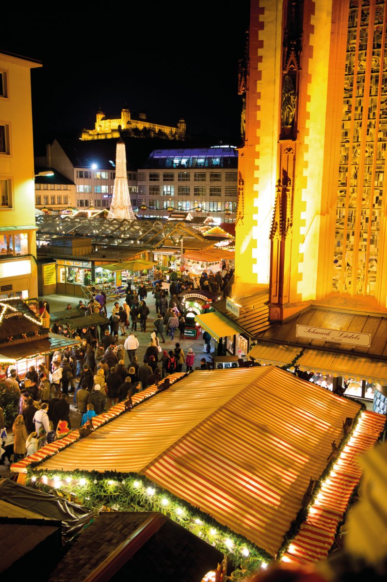 Festliches Highlight am Jahresende ist der Würzburger Weihnachtsmarkt auf dem Marktplatz. Der Duft von Glühwein und Lebkuchen, die stimmungsvolle Kulisse mit Marienkapelle und Falkenhaus, das geschmackvolle Angebot der rund 100 Händler mit Kunstgewerbe, Handwerkskunst, Geschenkartikeln, fränkischen Lebkuchen, süßen Leckereien und winterlichen Genüssen - das alles macht diesen Markt zu etwas ganz Besonderem. Beim Künstler-Weihnachtsmarkt präsentieren im historischen Innenhof des Rathauses über 40 Künstler Arbeiten ihres handwerklichen Könnens wie Malereien, Porzellan, Schmiedekunst, Kinderspielzeug, Florales und Weihnachtliches wie Christbaumkugeln oder Weihnachtsengel.