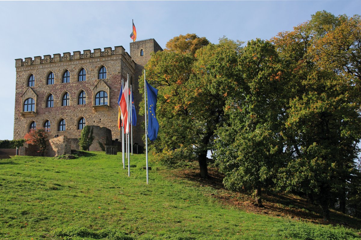 Das „Fest der Demokratie-Bewegung“ 1832 – das Hambacher Schloss inkl. Besichtigung. Nach der Mittagspause Fahrt mit dem Bus auf die Kalmit. Dort Wanderung durch das Felsenmeer (Wanderzeit ca. 2,5 Stunden).