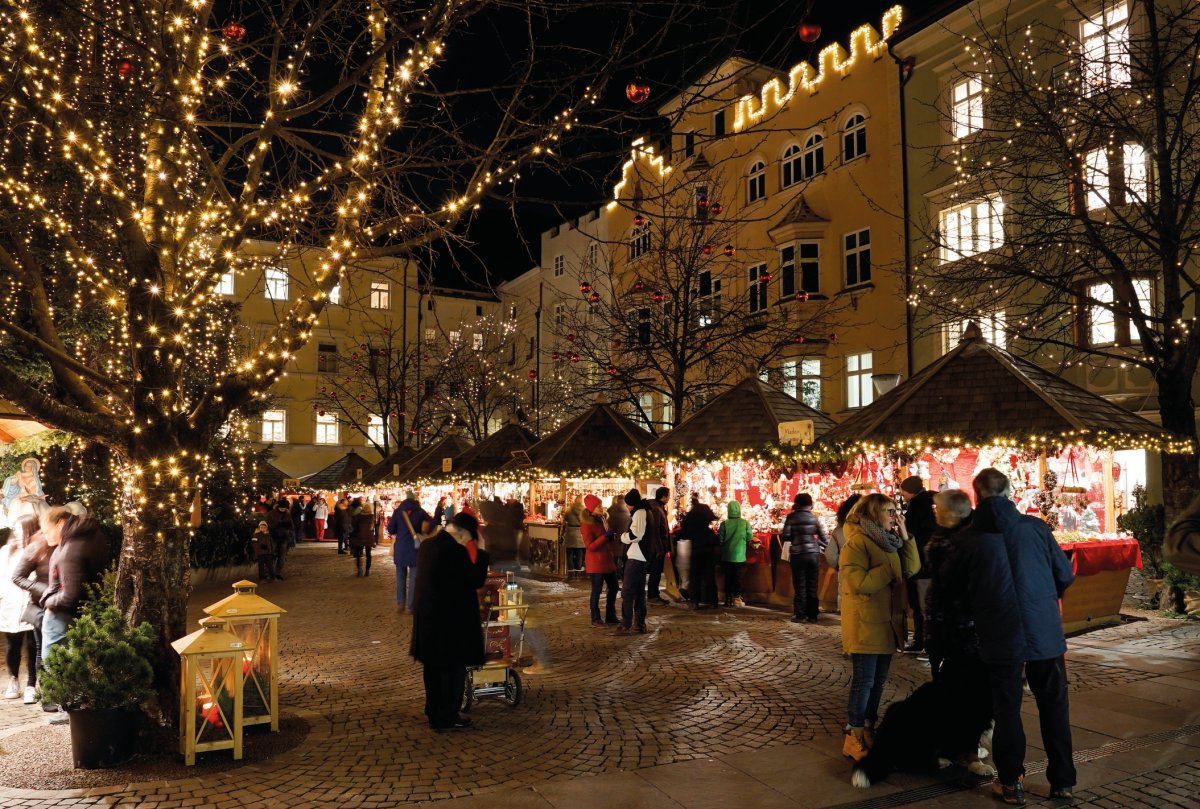 Der Christkindlmarkt Bozen ist der größte Weihnachtsmarkt Italiens. Seit nunmehr fast zwei Jahrzehnten lockt er mit seinem ganz eigenen, besonderen Flair alljährlich unzählige Besucher an den in der Adventzeit prächtig geschmückten Waltherplatz. Der Weihnachtsmarkt in Meran erstreckt sich von der Kurpromenade bis zum Thermenplatz, vom Sandplatz und seinem Weihnachtsdorf bis zur Winterpromenade, vom Pfarrplatz bis zum Kornplatz. Zurück im Hotel erwartet Sie ein festliches 4-Gang-Weihnachtsessen.