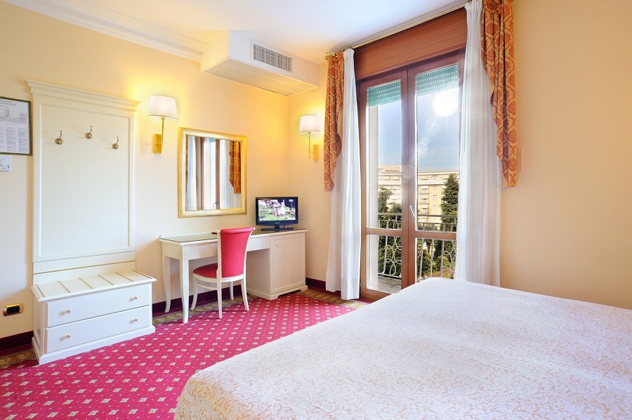 ****Palace Hotel Meggiorato, zentral gelegen, nahe der Fußgängerzone und des Kurparks. Rezeption, Lift. Kurabteilung mit Fangotherapie, Thermalhallenbad und Thermalfreibad. Wellness- und Beautybehandlungen, Massagen, Kneipp-Pfad, Fitnessraum, Thermalgrotte. Wassergymnastik. Zimmer mit Bad oder Dusche/WC, Föhn, Balkon, Minibar, Sat.-TV, Telefon, WLAN.