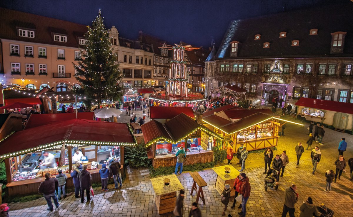 Zunächst geht es in die "bunte Stadt" im Harz nach Wernigerode. Hier bummeln Sie durch die hübschen Gassen mit romantischen Fachwerkhäusern. Besuchen Sie den Weihnachtsmarkt und tauchen Sie ein in weihnachtlichen Lichterglanz. Es erwarten Sie traditionelle Handwerkskunst, kulinarische Leckereien, Livemusik und natürlich Glühwein in allen Varianten. Gegen Mittag Rückreise nach Nürnberg.