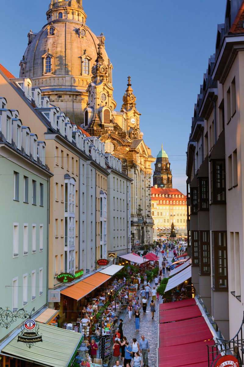 Wer in diese Stadt kommt, spürt sehr bald das Besondere, Eigentümliche und Faszinierende der viel gerühmten Kunst- und Barockstadt. Selbst wenn man das "Elbflorenz" von Bildern und Erzählungen her kennt - der einmalige Charme und Charakter dieser ungewöhnlichen Stadt erschließt sich erst bei der direkten Begegnung: die barocke Pracht des Zwingers demonstriert ein-drucksvoll die Macht des Herrscherhauses August des Starken.