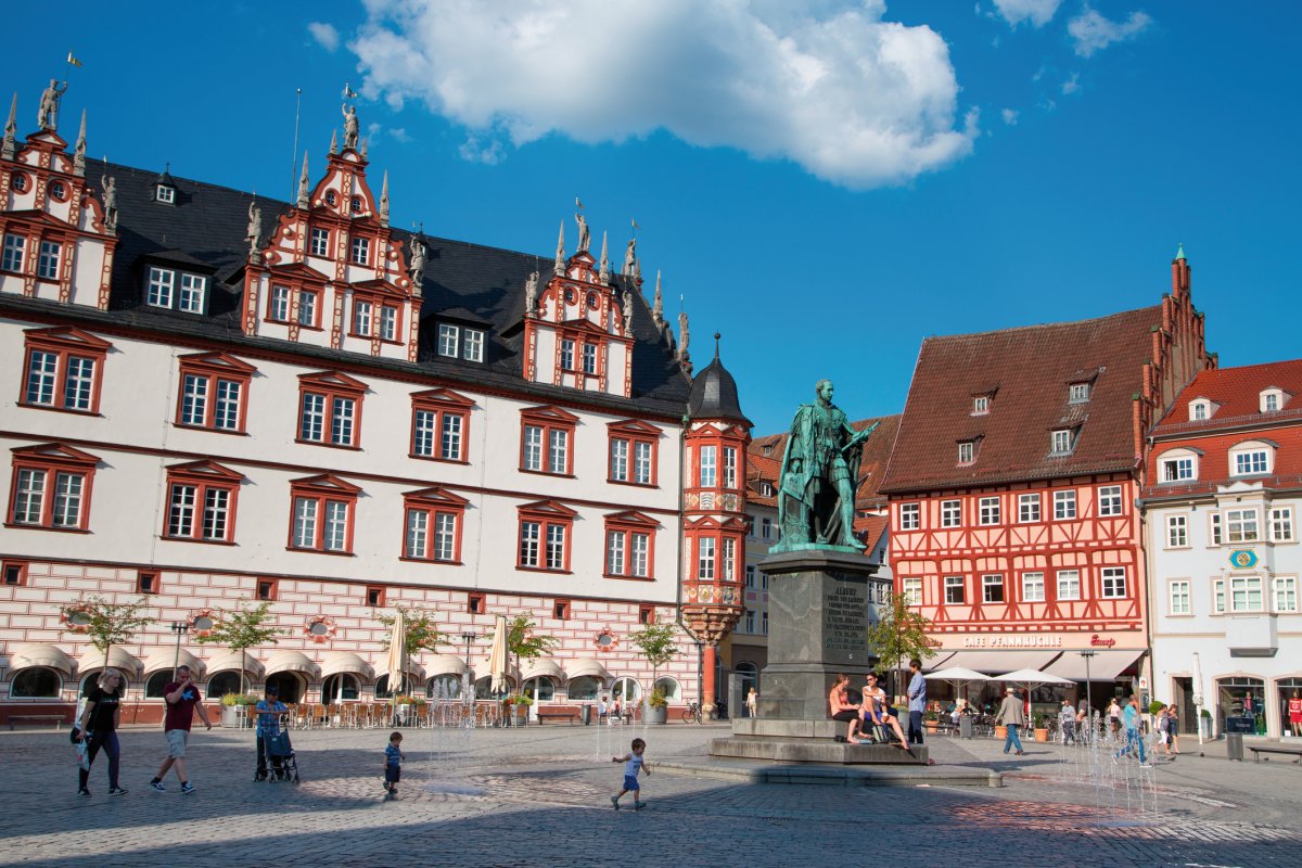 Coburg ist über 1.000 Jahre alt und gilt als die Wiege der europäischen Hochadels. Vom 16./17. Jhd. bis 1918 war sie Residenzstadt der Herzöge von Sachsen-Coburg. Über der Stadt erhebt sich mit der Veste Coburg die zweitgrößte erhaltene Burg Deutschlands.
