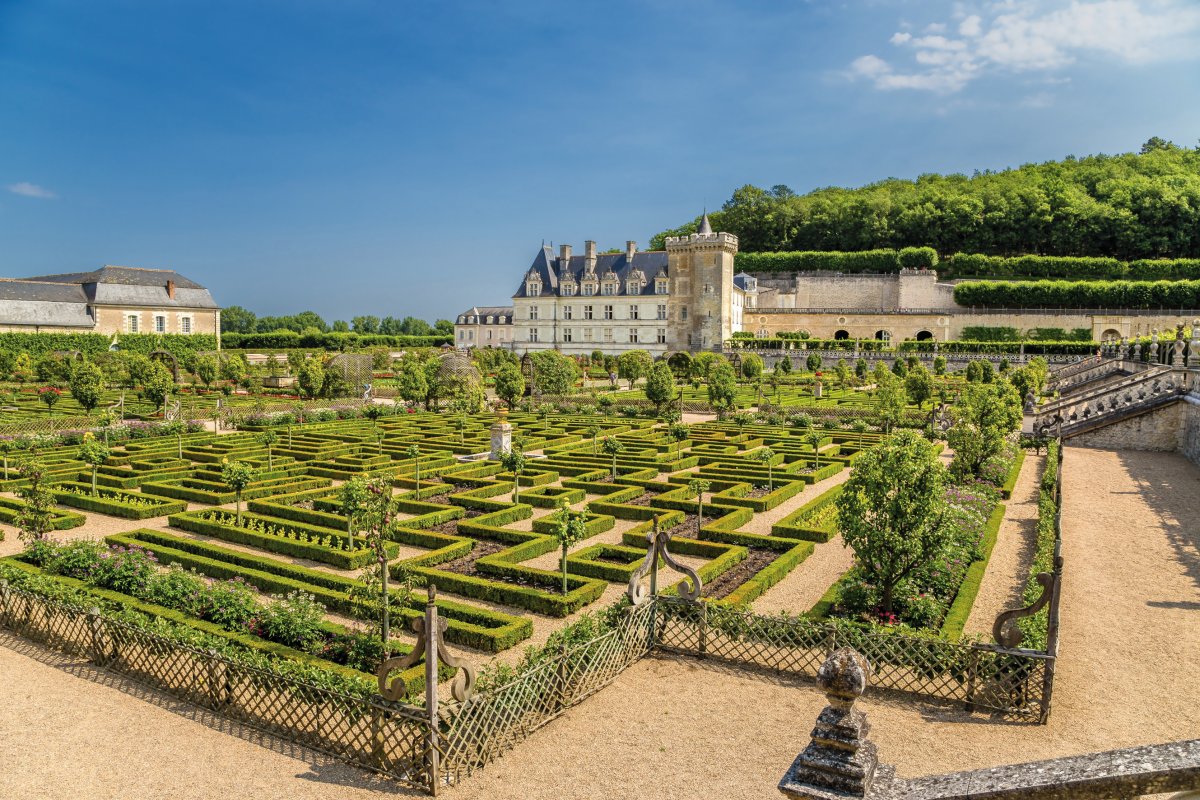 Die Touraine - die Landschaft um Tours - gilt als "Garten Frankreichs" und ihre Schlösser gehören zu den schönsten im Loiretal. Zunächst zum herrlichen Renaissancegarten des Schlosses von Villandry. Hier ist eines der letzten großen Loire-Schlösser in der Renaissance entstanden. Die berühmten Gartenanlagen von Villandry, die sich auf drei Ebenen ausdehnen, gehören zu den schönsten Frankreichs. Der originellste Teil des Anwesens ist der Gemüsegarten, der wie ein buntes Schachbrett gestaltet ist. Dann zum strengen Schloss von Langeais, in dem 1491 die Hochzeit von Charles VIII. und Anne de Bretagne gefeiert wurde. Die Zugbrücke, eine der letzten noch funktionierenden in Frankreich, senkt sich jeden Morgen, um die Besucher in einer authentischen mittelalterlichen Atmosphäre zu empfangen. Anschließend weiter nach Fontevraud, der einst bedeutendsten Abtei Frankreichs mit den Grabmälern der Plantagenêts (Richard Löwenherz, Heinrich II., Eleonore von Aquitanien). Die Abtei steht unter Denkmalschutz und gehört zum UNESCO-Weltkulturerbe.