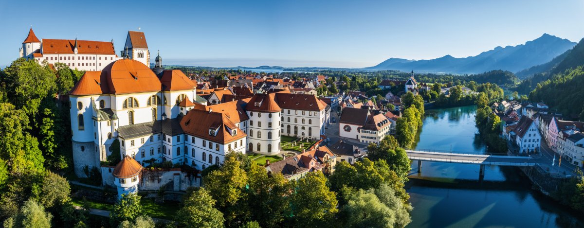 Füssen, die romantische Stadt im Allgäu, verzaubert mit ihrer historischen Altstadt, der atemberaubenden Bergkulisse und den weltberühmten Königsschlössern Neuschwanstein und Hohenschwangau. Umgeben von glitzernden Seen und den Allgäuer Alpen bietet sie eine perfekte Mischung aus Natur, Kultur und bayerischer Gemütlichkeit.