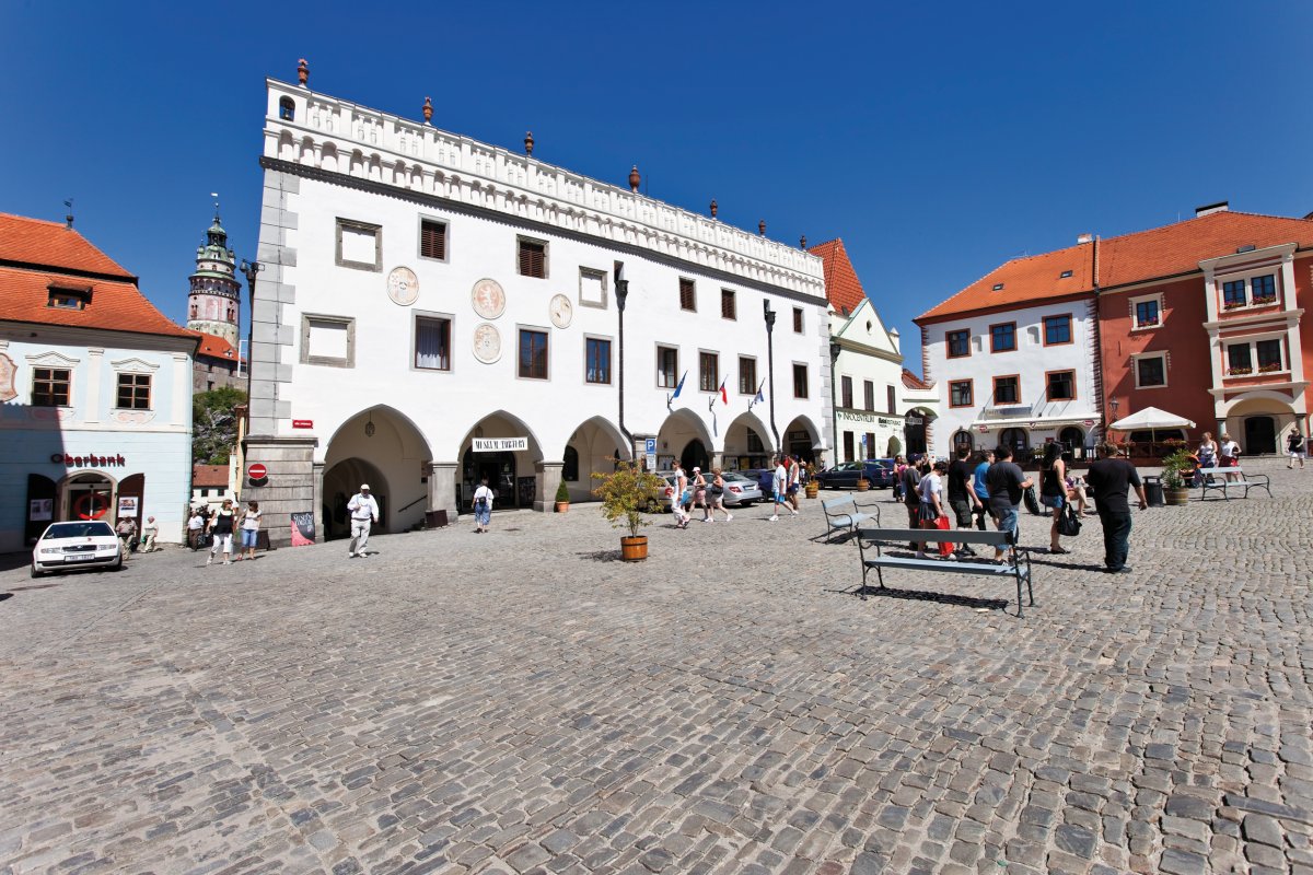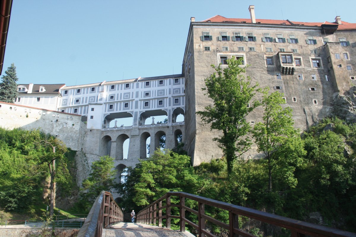 Heute besuchen Sie die „Perle Südböhmens“, nämlich Krumau. Krumau wurde aufgrund ihrer Einzigartigkeit in das Verzeichnis der Weltkulturdenkmälern eingetragen und steht unter UNESCO-Denkmalschutz. Sie spazieren durch die Rathausgasse, vorbei an schönen Renaissancehäusern hin zum ehemaligen Ringplatz. Hier sehen Sie die Mariensäule und die St. Veits-Kirche aus dem 14. Jh., welche reich mit Wandfresken und einem frühbarocken Hauptaltar ausgestattet ist. Weiter zum heute im glänzenden Renaissancestil umgebauten Schloss, das sich romantisch über der Donau erhebt.